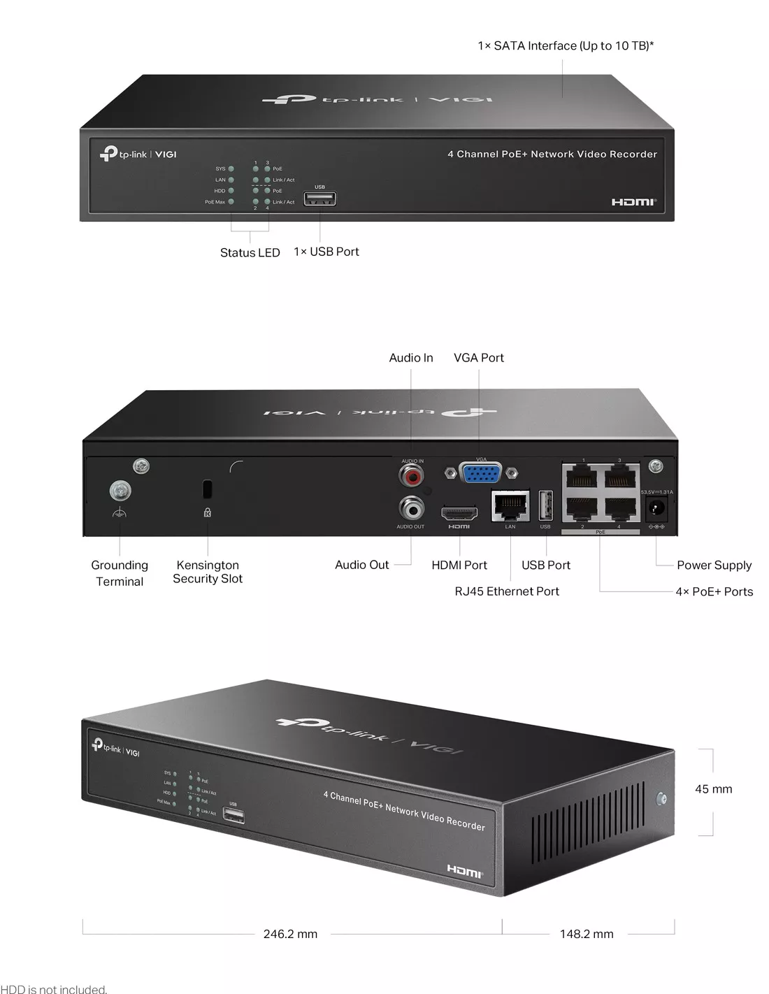 - 4-Channel 4 K HDMI Output — Local live-view/playback in Ultra HD plus free VIGI App/Client for remote access.