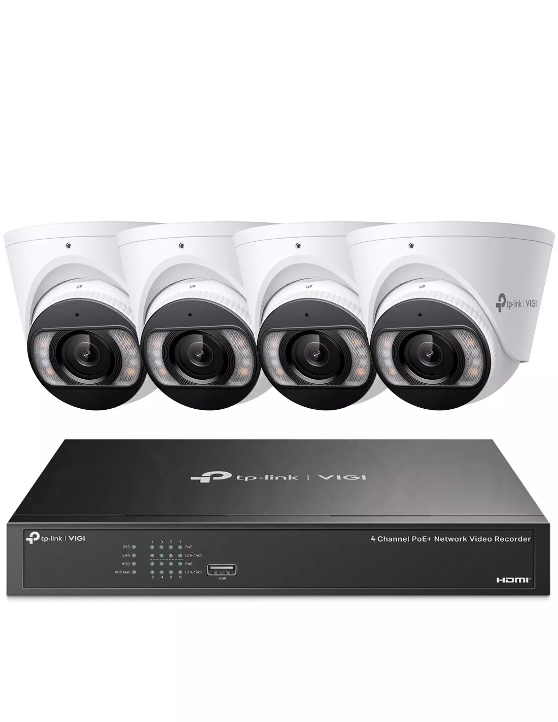TP-Link VIGI 8MP 4K UHD 4-Channel IP NVR Kit | 2TB Storage | Full-Colour 4 Dome Cameras for Enhanced Surveillance