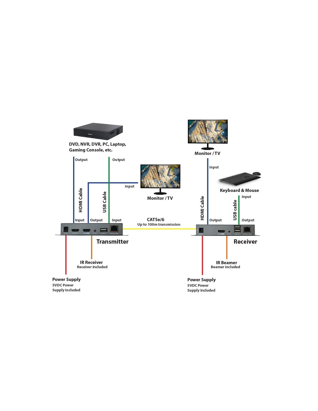 - HDMI video and audio extension over network (CAT5e/CAT6) cabling.
