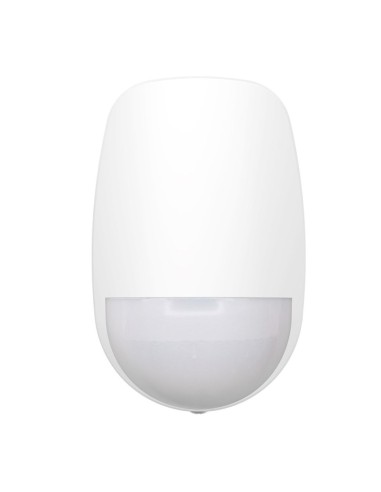 The Hikvision HIK-PDP15P-WB PIR detector has two-way wireless communication featuring motion detection, tamper protection, low battery, and RF supervision. It can operate for up to 5 years from an in-built battery and monitors the area within a 15 m radius, ignoring animals while recognizing humans from the first step.