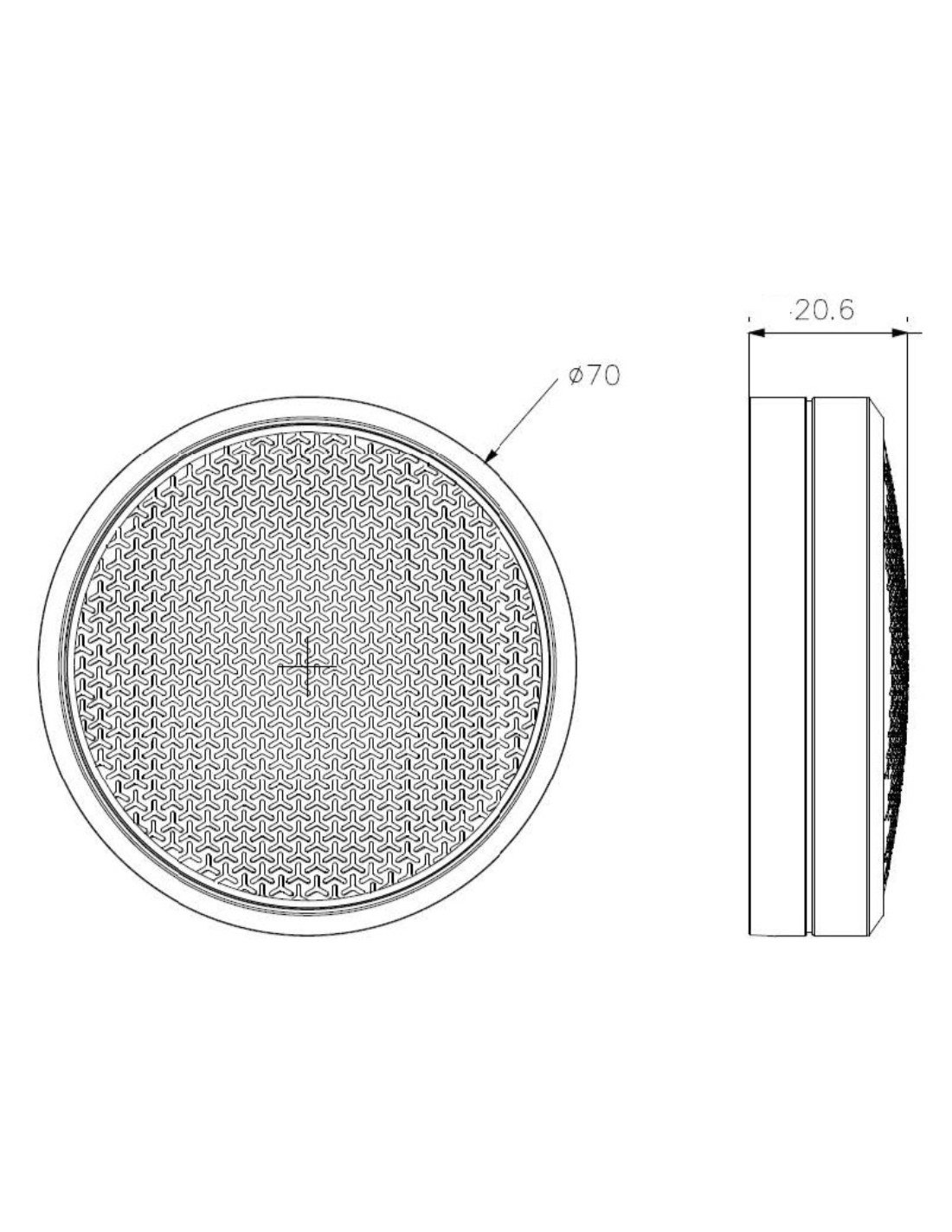 - Construction: Aluminium • Dimensions: Ø70 × 21 mm • Weight: ~0.11 kg