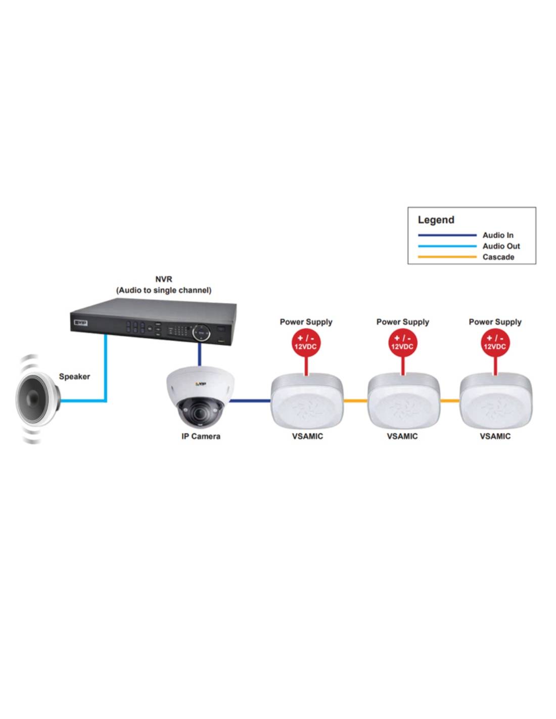 - Plug & play — RCA audio out to DVR/NVR/encoder; 12 V DC power.