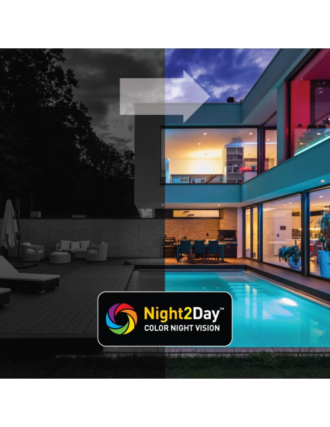 - Colour Night Vision with Lights on - B&W with IR