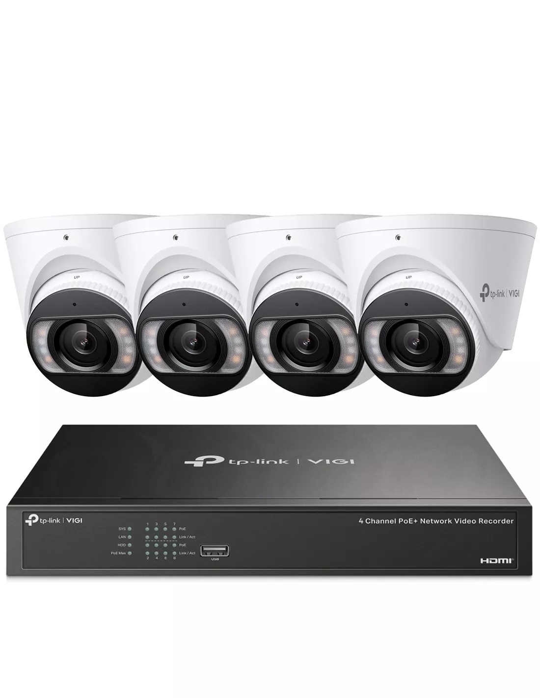 Includes 4× 4MP VIGI turret cameras