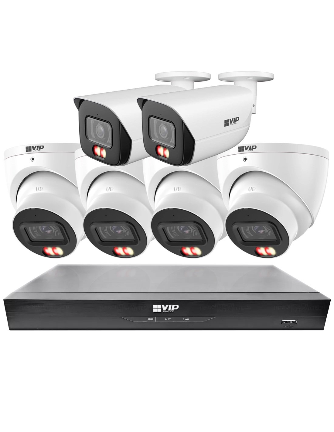 VIP Vision 8MP V8100 Series 8Ch AI IP NVR with 2TB 2xBIRG + 4xDIRG Fixed Lens Cameras - Advanced Surveillance - 4-Year Warranty!