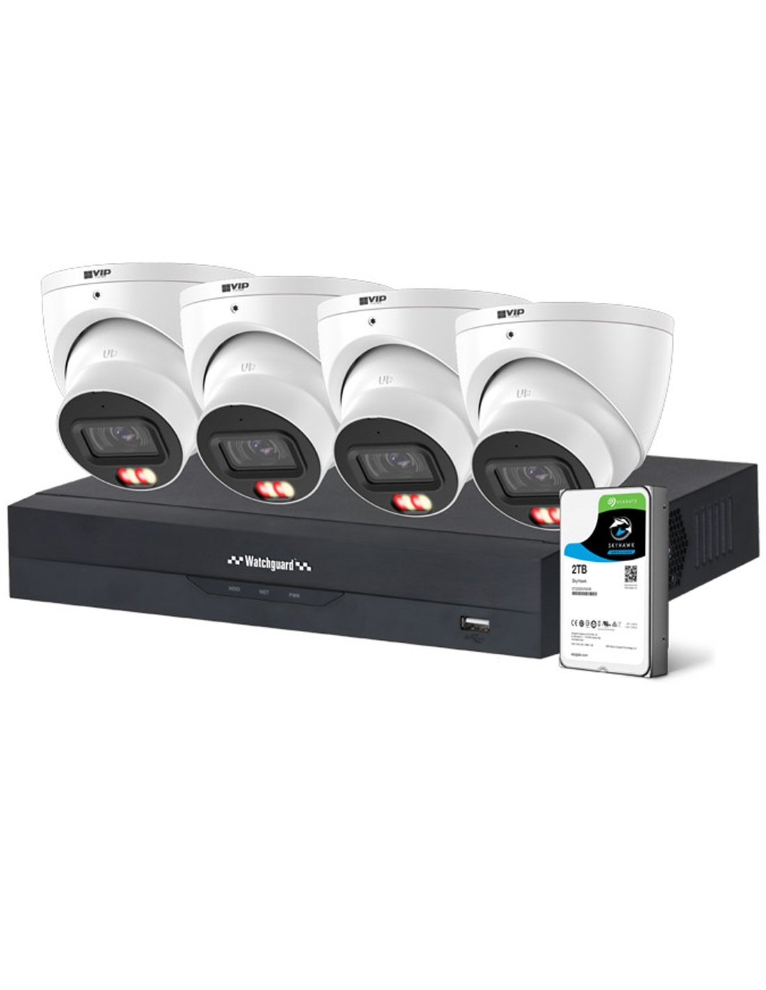 - NVR: Watchguard Compact 4‑channel PoE NVR • HDD: 2TB pre‑installed (surveillance grade)